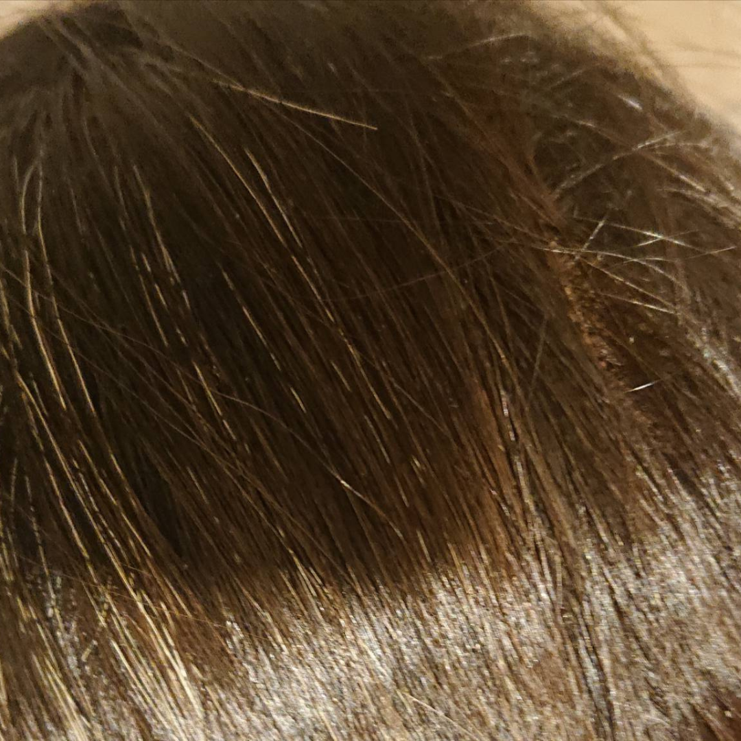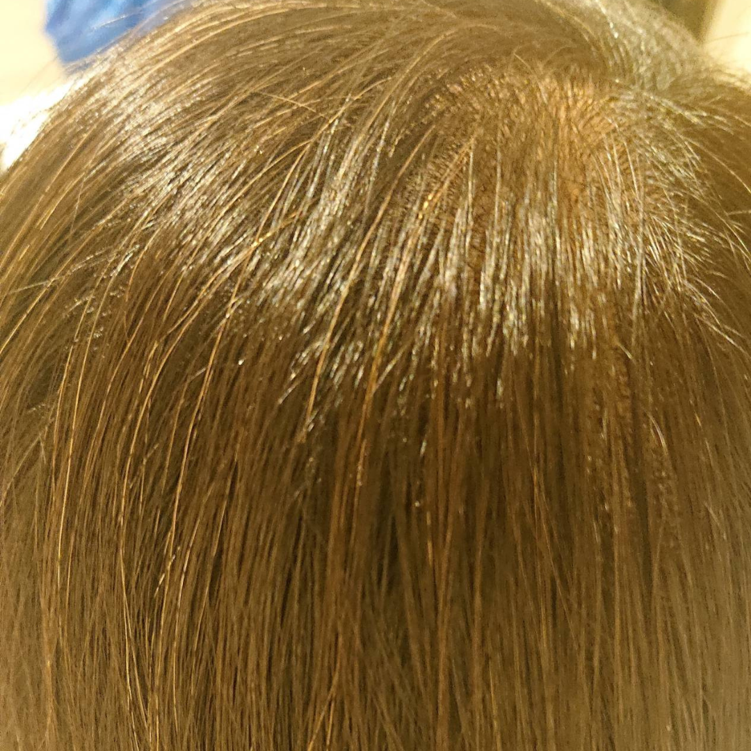 少しわかりづらいかもですが…根本から伸びている白髪がほんのり茶色くなっています♪